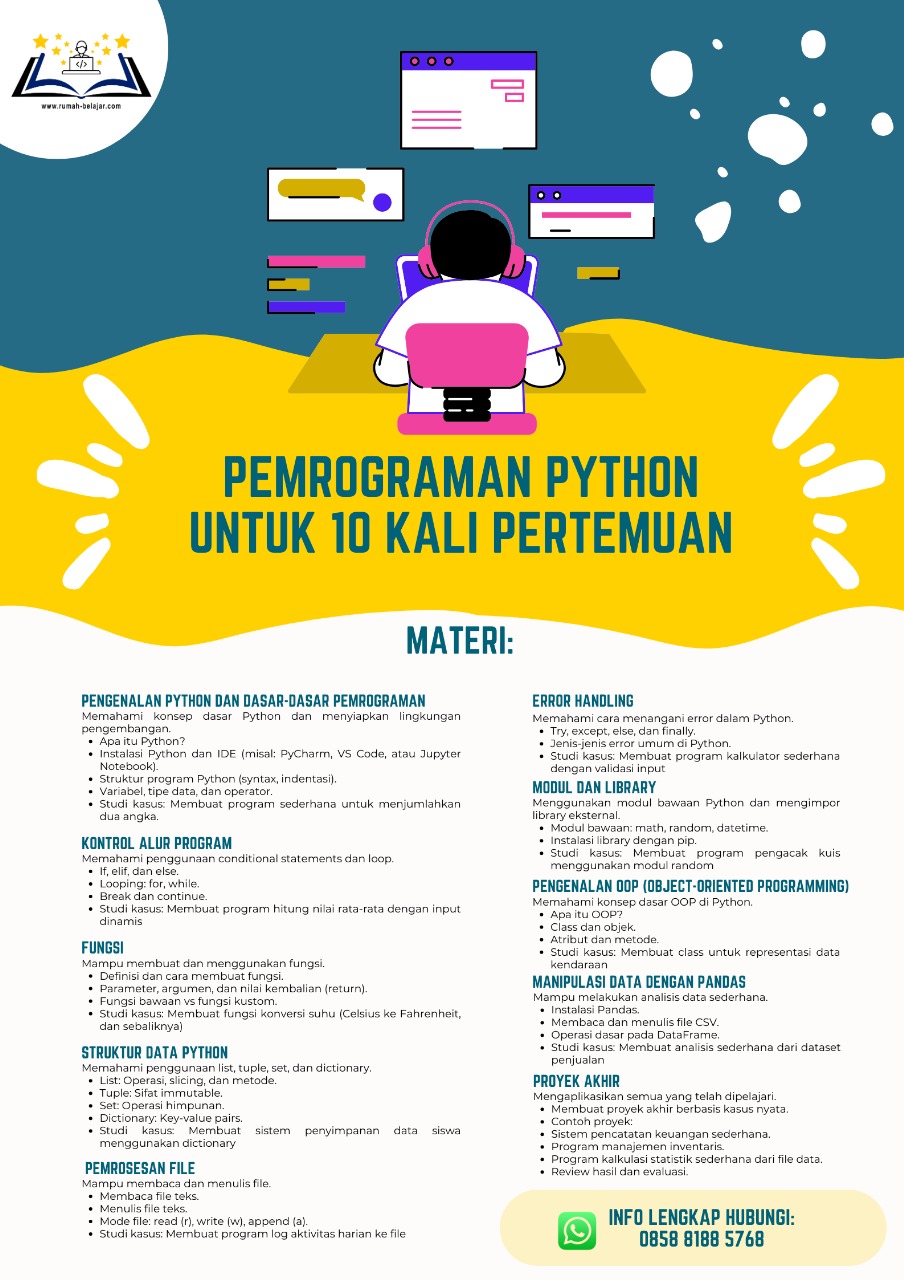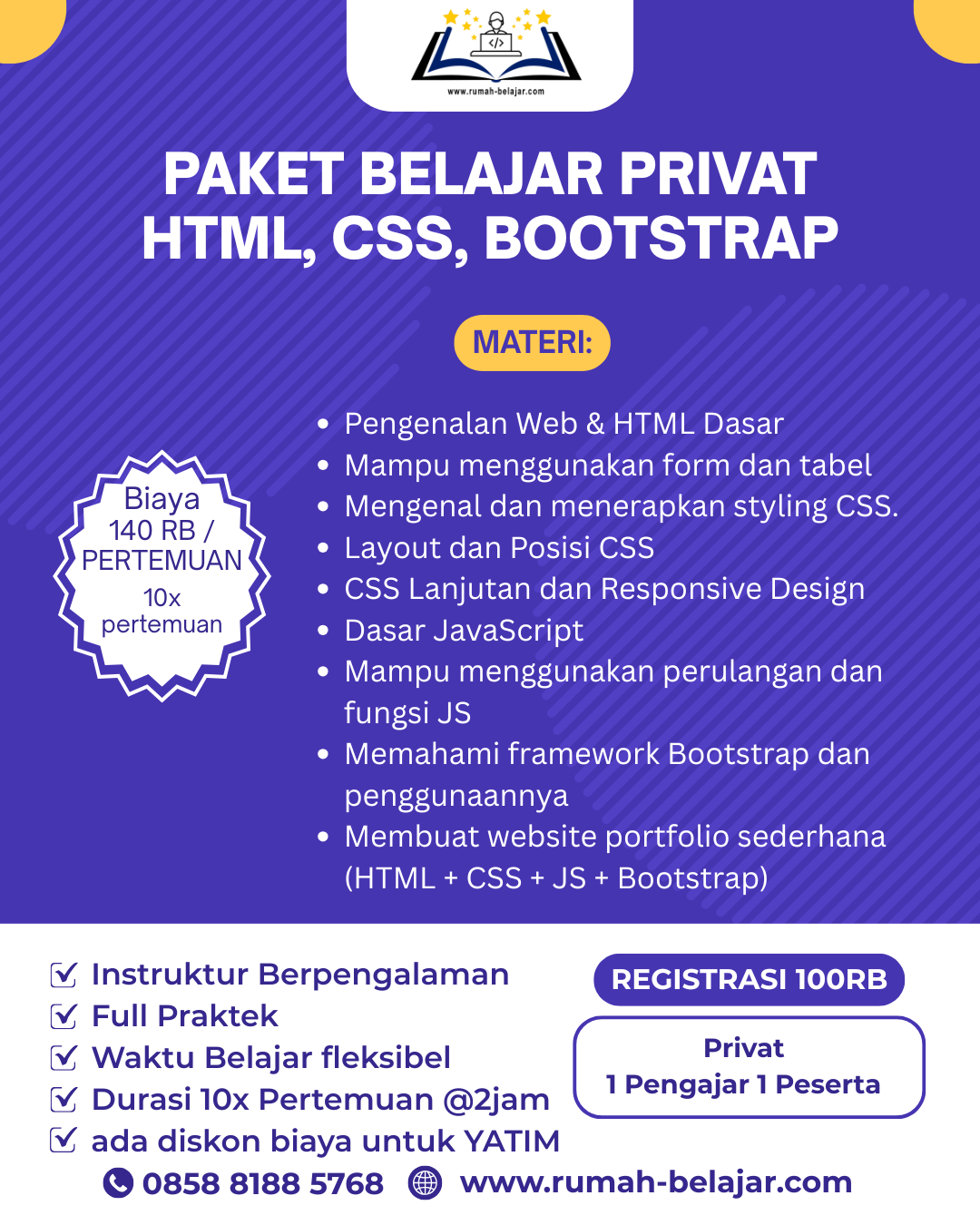 Rumah Belajar Komputer Privat menyelenggarakan program belajar komputer dari pemula sampai mahir, sistem belajar bisa online dan offline.