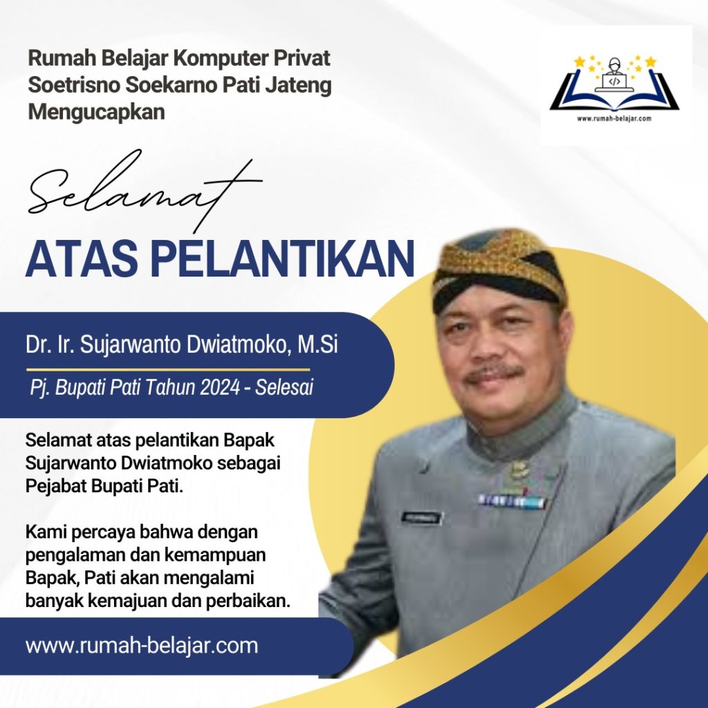 Selamat atas pelantikan Bapak Dr. Ir. Sujarwanto Dwiatmoko, M.Si sebagai Pejabat Bupati Pati. Kami percaya bahwa dengan pengalaman dan kemampuan Bapak, Pati akan mengalami banyak kemajuan dan perbaikan. Kami mendukung penuh visi dan misi Bapak dalam memimpin dan berharap Bapak dapat membawa perubahan positif serta kesejahteraan bagi masyarakat Pati. #kotapati #kabupatenpati #bupatipati #patibumiminatani